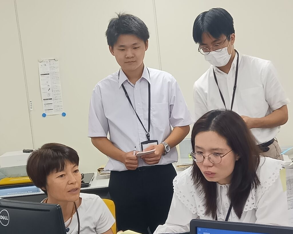 This year, we hosted two interns and, with the mindset of “since they’ve come all this way, let’s give them real hands-on experience,” each staff member took turns designing practical training programs. These included journal entry input using accounting software, payroll calculation, and explanations of social insurance and tax systems.