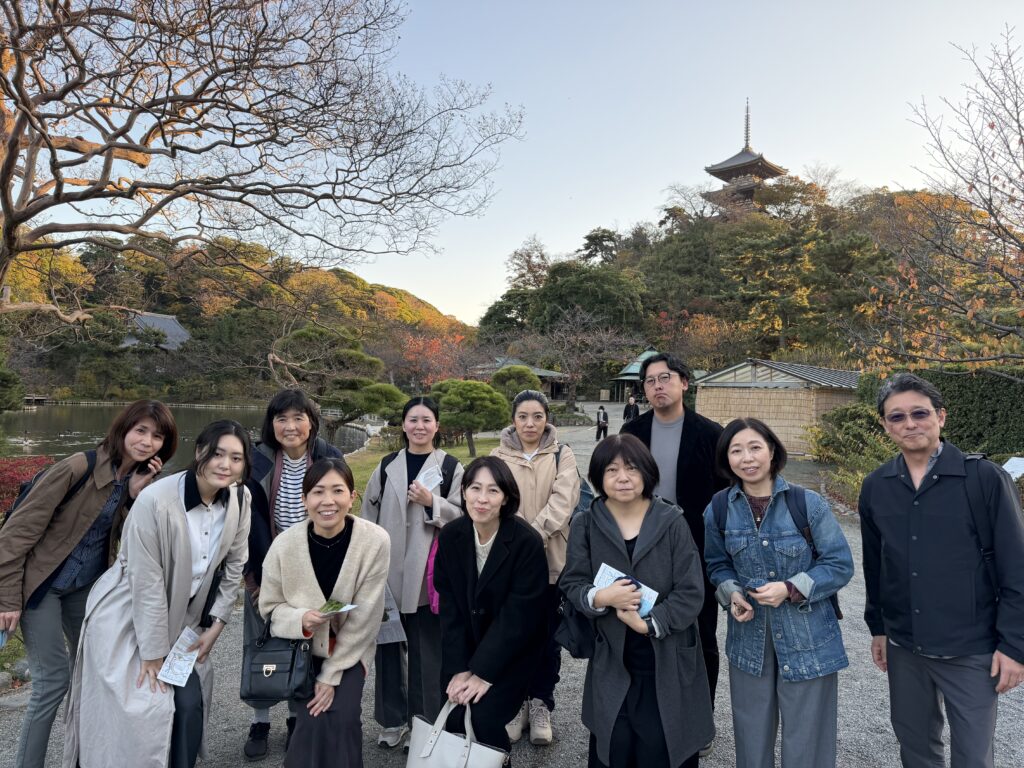 After lunch, we visited Sankeien Garden in Yokohama, located nearby. This historic garden, adorned with vibrant autumn leaves, provided a wonderful opportunity for employees to relax and connect before the busy season.